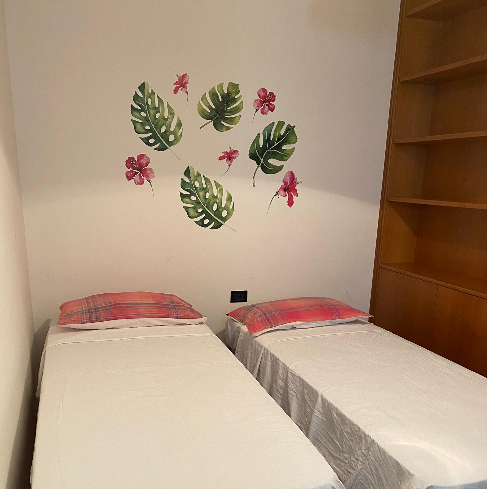 Sono due camere da letto ognuno con la sua macchina del clima , bagno , cucina e soggiorno ( anche questo ha la propria macchina clima) , piccola area lavanderia con pilozza e balcone che gira tutta la casa. Stesso piano